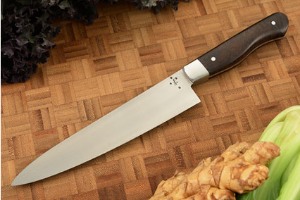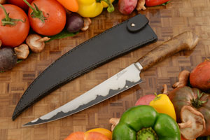 The blades are full flat ground for high performance, effortless slicing. They were heat treated by Peters' Heat Treating, for a superior, long lasting edge (Hrc 62-63).