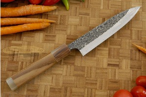 Yoshikane knives, made by the Yoshida family, are highly treasured. They make both single bevel and double bevel knives. Yoshikane Hamano is located in Sanjo, Niigata, an area well known for their high performance, hand forged knives. They were founded in 1919. The workshop is currently led by 4th generation bladesmith Kazuomi Yoshida (born in 1973). Yoshikane Hamano continues to excel.