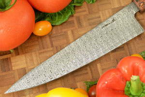 Description: Brian Tighe creates unique, functional and visually appealing knives of the highest quality. His blades are the result of 25 years of experience in metallurgy artistry and tactical expertise. Recently, he decided to put his hand to creating uniquly dramatic, high performance chef's knives and the results are exceptional.