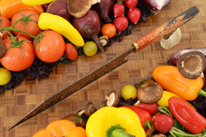 This K-Tip chef's knife shows Mostert's work at its best. Chef's knives are the general purpose knife in the kitchen. From slicing tomatoes to chopping onions, this knife will get the task done perfectly. It is sure to be a kitchen favorite. The K-tip provides a strong, detail-oriented tip.