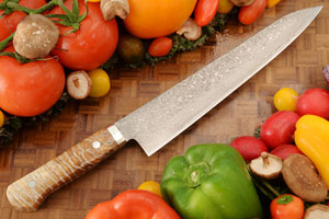 Product Description for Damascus Chef's Knife (Gyuto) - 240mm (9-1/2in) - with Mammoth Molar