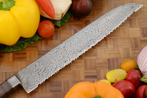 Product Description for Integral Damascus Bread Knife (9-3/4 in.) with Curly Maple