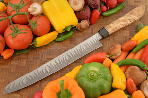 Flame Tooth Damascus Slicer with Himalayan Birch (11-1/2")