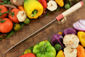 Description: Sujihiki are slicers or carving knives that are well suited for slicing and portioning meats and fish due to the thin, long blade. Extremely sharp, they are also well suited to preparing sushi and sashimi. The long blade allows proteins to be cut in a single slice.