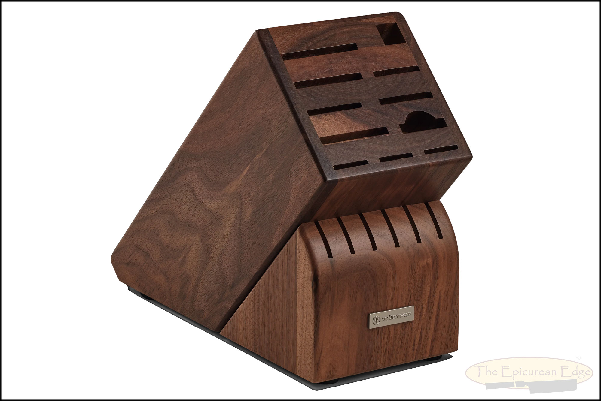 The WÜSTHOF 17-Slot Walnut Knife Block offers a safe and convenient way to store your knives and includes a slot for your honing/sharpening rod and kitchen shears.