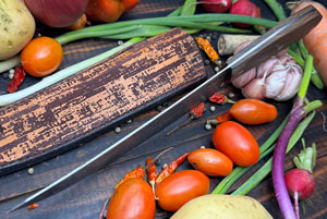 Description: This exceptional Breaking Knife is the work of Argentinian knifemaker Pablo Untroib. Pablo lives in Buenos Aires. He specializes in knives for professional and amateur cooks as well as making outdoor knives.
