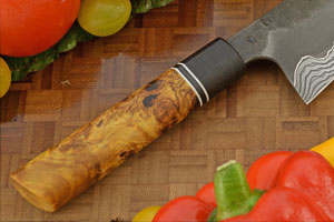 Damascus San Mai Chef's Knife/Santoku (7-1/4 in.) with Poplar Burl and Bog Oak