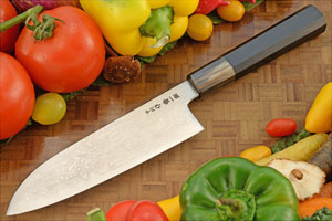 Product Description for Chef's Knife (Santoku) - 6-1/2 in. (165mm) - Aogami 1 Carbon Damascus