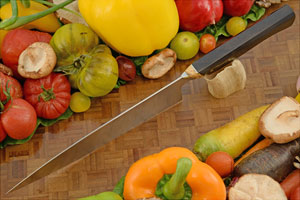 The chef’s knife is a multipurpose knife used for just about every cutting job in the kitchen. Whether chopping, slicing, dicing, or mincing, this will be your goto knife. There's plenty belly curve to enable rocking cuts, which enhances the knife's versatility. This chef’s knife is sure to be a kitchen favorite.