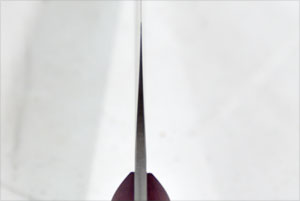 The blade is hand ground Nitro-V stainless steel. Nitro-V is a martensitic stainless steel with a chromium-based composition created by the New Jersey Steel Baron company. Nitrogen and vanadium have been added to the composition of AEB-L to improve edge performance. The resulting blade has an extremely keen, long-lasting edge and is just as tough or tougher than similar carbon steels while being completely stainless. The blade features a shinogi grind -- a transition in the grind provides exceptional food release.