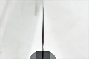 The blade features a satin (migaki) finish. An ambidextrous convex grind provides effortless food release while chopping and slicing. The thin (laser) blade effortlessly slices through foods with virtually no drag. The blade is impressively lightweight, making it comfortable, even after hours of use.