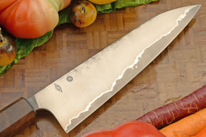Description: Acre Forge is a community of passionate, expert bladesmiths based in Portland, Oregon. From one-of-a-kind Signature knives to production knives designed collaboratively by their makers, they are committed to creating gorgeous, high-quality kitchen knives that chefs and home cooks alike can treasure for life. This custom chef's knife was made by Adam Andrews of Acre Forge. Adam has over 12 years experience as a knifemaker and particularly prefers to make Japanese-inspired knives.