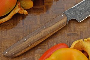 Description: South African knifemaker Nico Pelzer creates an amazing knife. When he told me he was creating some chef’s knives for us, I was extremely eager to see what he came up with. I wasn’t disappointed. This 6-3/4” utility knife shows all the refinement and skill of his precision folders, packed into a high-performance kitchen knife.