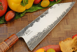 Product Description for Bunka Chef's Knife with Curly Big Leaf Maple and Ironwood (8 in.) - V-Toku2 San Mai