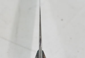 Description: This chef’s knife was made by Minnesota knifemaker Richard Patterson. It is from Richard’s benchcrafted line. Like his other knives, these knives are hand-built in his workshop, but are designed to be at a more accessible price point. He creates these high-performance chef’s knives to be daily workhorses for both professional chefs and home cooks.