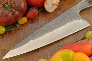 This knife will be a perfect 'go-to' knife in the kitchen. The 8-3/4 inch blade provides plenty of reach, while still being easy to control. A gentle arc to the blade's edge makes this a perfect knife for both a rocking chop and a forward slice. Whether chopping onions, slicing tomatoes, mincing parsley, or portioning and slicing meats, this elegant chef's knife is sure to become a favorite in your kitchen.