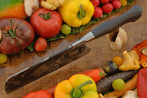The blade moves seamlessly into an integral bolster. This technique has superior structural integrity and requires a particularly talented smith.