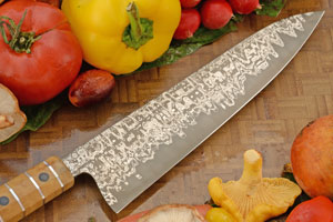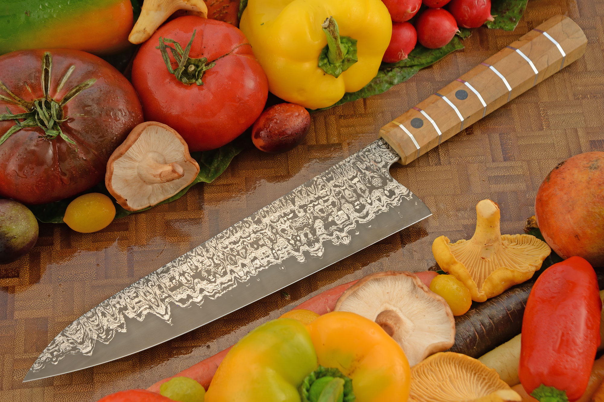 Guitar String Damascus Chef's Knife - Gyuto (8-3/4 in.) with Spalted Maple