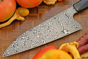 Product Description for Damascus Chef's Knife-Santoku (7 in) with Ancient Bog Oak