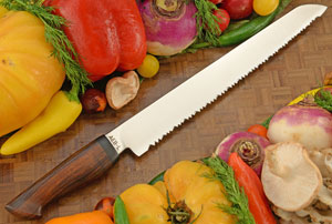 Whether you prefer a rustic, crusty bread or a soft and tender loaf, this 10-1/2 inch bread knife will cut through easily to give you the perfect slice of bread every time. The blade combines large and smaller serrations for a smoother, cleaner slice. These aren't jagged little teeth that chew through your bread. These are razor-sharp serrations that will glide through the bread with ease.