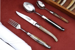 Product Description for Laguiole Flatware, Horn Tip (6 place settings)