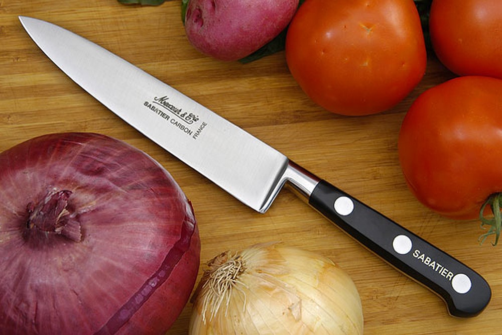 Sabatier knives are designed for the professional chef. The carbon steel blades stay sharp longer than stainless steel blades and have the ability to take a keener edge. Though the blades require minimal additional care to prevent corrosion and staining, many professional chef's prefer a keen carbon steel edge over stainless steel. The blades are tempered to Rc 53-54, allowing for a razor sharp edge that is quickly and easily maintained. A one-piece, drop forge construction produces a stronger knife, and provides optimal balance and weight.