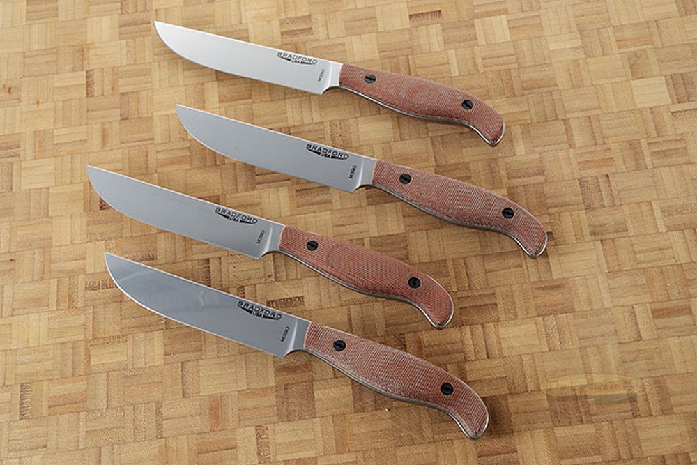 Description: Bradford Knives are handmade in Renton, Washington. Bradford Larkin's background working in an aerospace machine shop is clearly evident in these high performance, elegant steak knives.