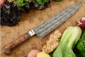 Description: Mastersmith Bill Burke's chef's knives are among the highest performing cutlery found anywhere. His heat treatment technique, combined with his choice of steel, results in edge holding that is far beyond other knives. This is a knife that you won't want to put down.