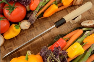 Kamagata Usuba are used for cutting meats and vegetables into thin slices typical of Japanese cuisine. Usuba are quite thin and should not be used on hard rind vegetables. The Kamagata style combines a sharp tip that can be used for detail work with a long, keen edge for slicing.
