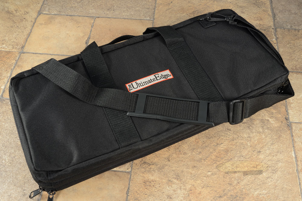 Extremely durable and well made - zippers operate smoothly, all pockets are stitched well and the material is ultra heavy-duty. 18 slots for knives, three interior mesh accessory pockets. Accompanied by deluxe carrying strap.