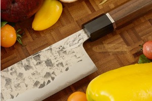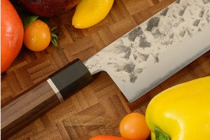 Blade: Hand forged shirogami #1 carbon steel set between layers of hammer finished (tsuchime) stainless steel