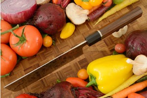 Description: The nakiri usuba is a traditional Japanese knife form ideal for chopping and slicing fruits and vegetables, as well as boneless meats. The edge is double beveled, like a Western knife. Though sometimes called a vegetable cleaver, the thin edge geometry makes it a precision tool, rather than a Japanese equivalent to meat cleavers. From chopping to slicing, the Yoshimune Nakiri will make the task a breeze.