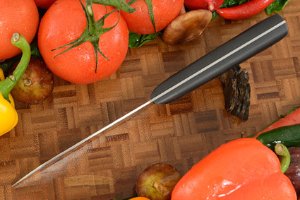 Description: In Japan, this nimble, triangular blade is called a honesuki. It's perfect for boning poultry and trimming meats, yet it also has a wide variety of other food prep functions — from slicing garlic to trimming vegetables. The narrow tip is ideal for maneuvering around bones and between joints. The wider end makes slicing vegetables like shallots or trimming green beans quick and easy. This blade shape provides a high level of control, which is especially important when boning or handling small to medium-sized fruits and vegetables. If you like a compact, agile knife, the Asian Multi-Prep (HT7069) will be your new go-to!